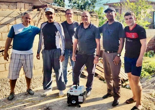 Roberto Pino y su equipo de hermanos entregando generadores.